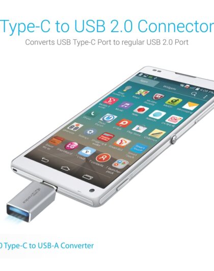 - Portronics Grab-X Type-C to USB 2.0 Connector Converts USB type-C port to regular USB 2.0 port. Works with most smartphones with type-C port. Perfect for Apple MacBook 2015 and Google Chromebook Pixel 2015. Works with USB 2.0 hub, USB external hard drive, USB Flash drive, USB card reader, USB mouse/keyboard, USB Ethernet adapter, USB printer, USB DVD reader/writer, etc.