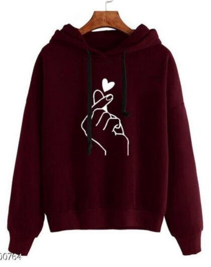Maroon Heart Print Hooded SweatShirt