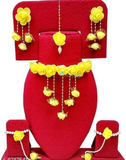 Description: It Has 1 Piece Of Necklace , 1 Piece Of Maang Tikka , 1 Pair Of Finger Ring Bracelet & 1 Pair Of Earring