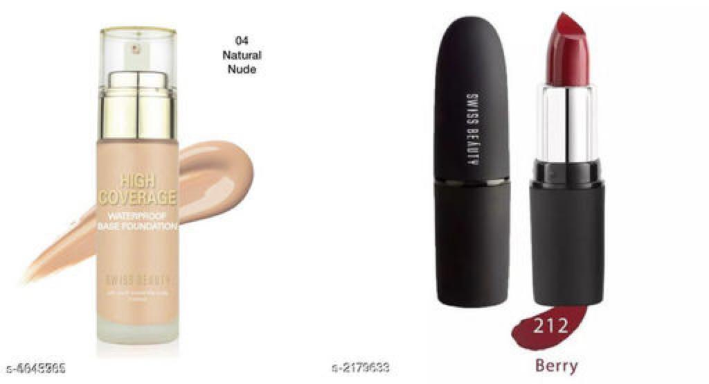 Product Name: Swiss Beauty High Coverage Base Foundation+Swiss Beauty Lip Care Matte Finish Lipstick