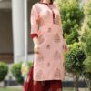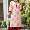 L (Bust Size: 40 in, Shoulder Size: 15.5 in, Kurta Waist Size: 38 in, Kurta Hip Size: 42 in, Kurta Length Size: 42 in, Bottom Waist Size: 33 in, Bottom Hip Size: 43 in, Bottom Length Size: 37 in)